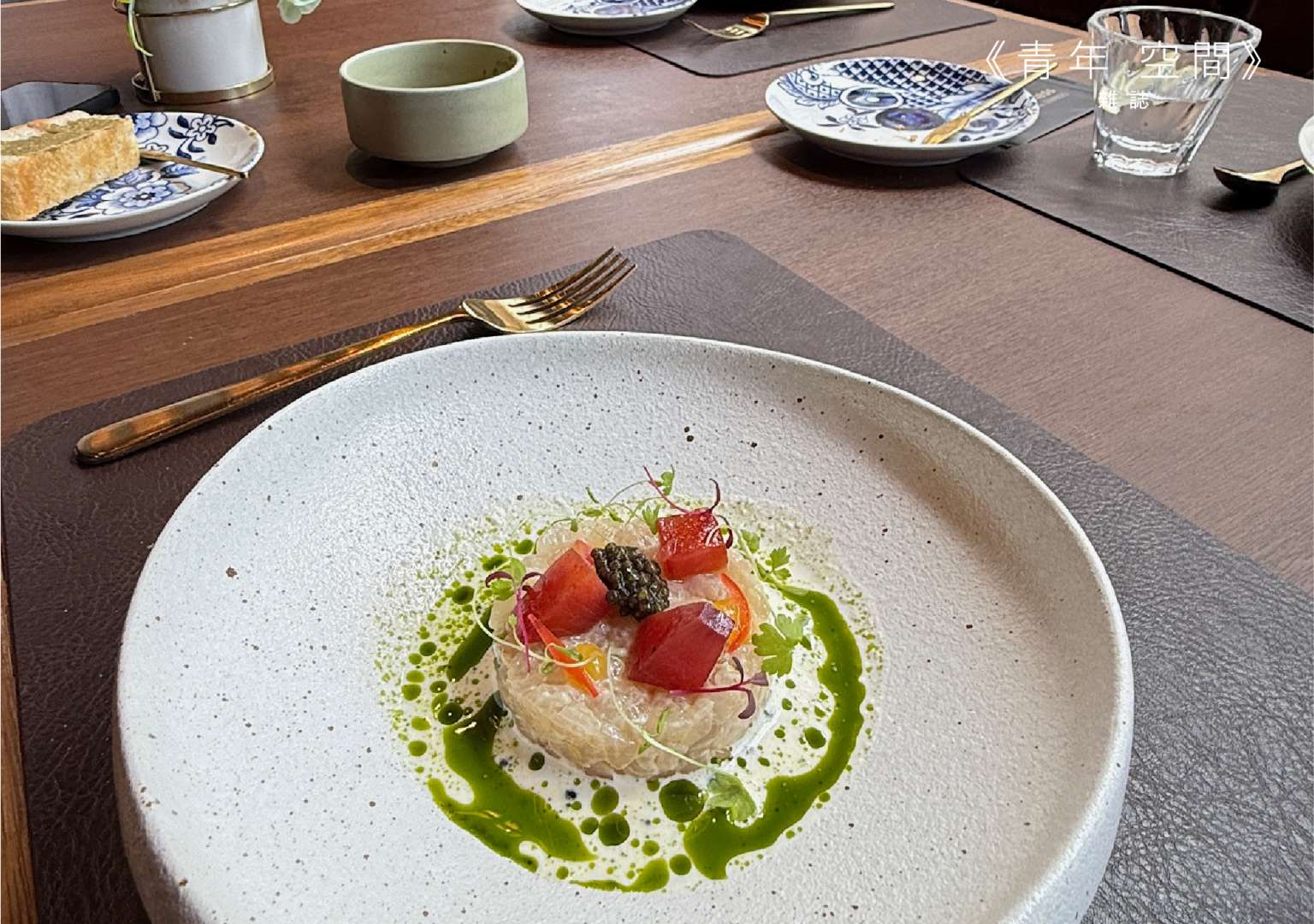 而另一道前菜「卡邦尼薯糰」則以臘肉取代卡邦尼中傳統的煙肉末,醬汁處理上又減少芝士的用量,使得臘肉油脂的香氣更突出,令食客在這道傳統西菜中亦能嚐到中式風味。Chef Kasey更表示,餐廳在處理如臘肉之類的的這些加工食材時,多數時候會盡量自行醃製或加工以確保能更多地掌握其風味。儘管廚房面積不大,他亦期望這些食品處理手藝能更好地呈現及傳承。