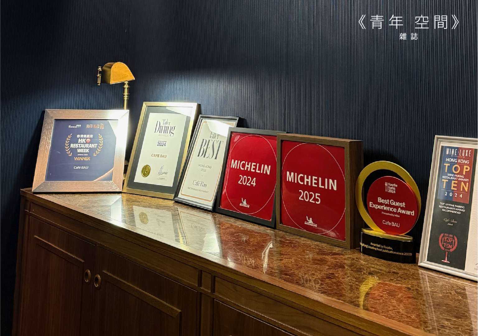 Cafe Bau 由米芝蓮三星名廚,「廚魔」梁經倫(Chef Alvin Leung)、其徒弟,主廚陳嘉賢(Chef Kasey Chan)與LUBUDS Group共同主理。餐廳名字中的Bau,名字靈感源於香港的標誌性的洋紫荊花,是其學名Bauhinia × blakeana的縮寫。乘升降機而上,𨋢門甫打開就能看見充滿香港地道特色的照片,當中有他們招牌菜的原材料—本地種養的二澳米及平原雞。琳琅滿目的照片及獎狀旁,接待處的一角亦貼有「食本地鮮」的標誌,標示餐廳屬於Eat Local餐廳會員名單之內,在選購食材時會盡量善用本地資源與原材料,同時減少碳排放。而據Chef Kasey表示,餐廳有八成左右的原料均是香港製造,就連調味品亦選用不少本地特色醬料及醃菜入饌,期望食物由種植到加工,醃製到烹調都能緊貼本土的原味道。