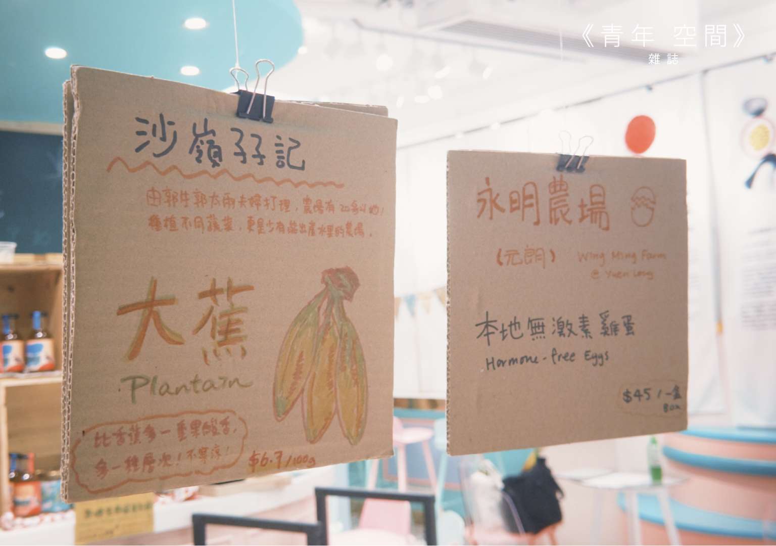 粉紅色的店舖裝潢下,野草五年間慢慢在這裡萌芽。說到它廣為人知的產品,定必是其以本地作物為主調的意式雪糕。野草的雪糕及雪芭皆以本地農莊的作物為原材料,因此雪糕的口味也是隨著季節而變動。他們在社交媒體上經常分享雪糕口味資訊,並清楚標示每款雪糕所用材料的種植地點。近期的單品如蕉徑芋頭及打鼓嶺南瓜亦被創作成為雪糕口味之一。小魚坦言製作過程步步充滿挑戰,皆因每一步也需要人手製作。從農地收成運送到不同的零售點,他們需要爭分奪秒處理作物。簡單如剝皮或複雜如烹煮,也是由他們自己加工。憶及最深刻的記憶,他們道出夏季鮮果類作物因為保質期較短,所以他們需要迅速製作及處理。而有一次他們曾收穫十多斤的黃皮,由於黃皮肉與皮較粘稠,同時也需要將皮肉分離,因此他們需要通宵處理才能確保其保持於最佳狀態。而最近收成的白龍王玉米亦不遑多讓,玉米收成後的甜度與保質期將會直線下降,因此他們也刻不容緩地處理食材。有鑒於作物也是以天然方式種植,有時候會出現狀況如「唔齊米(指玉米粒生長不全)」,因此需要探索其加工為雪糕的可能性。每一步的親力親為,從嘗試口味到製作,每一次的付出也是讓其不斷生長的養分。
